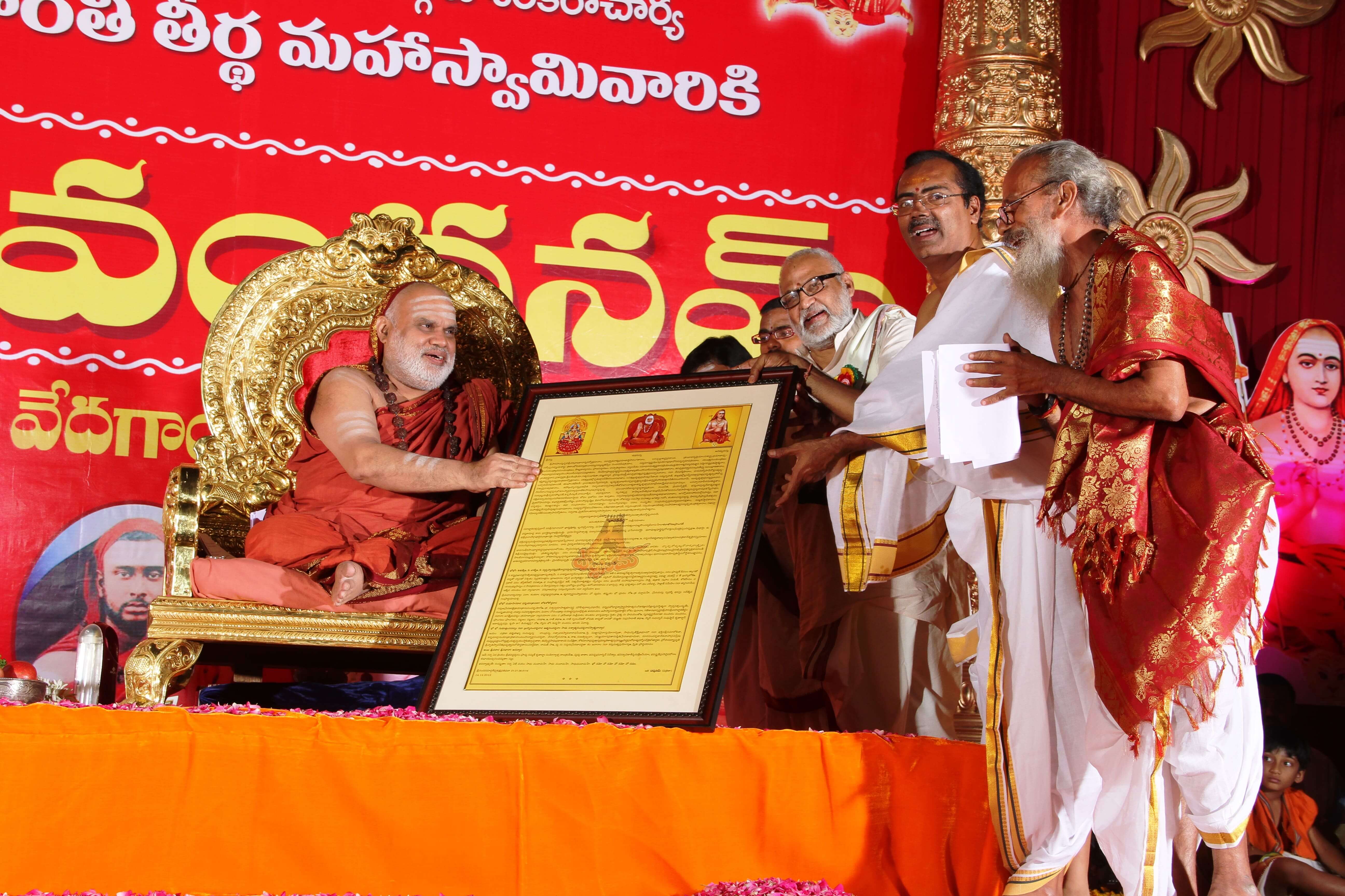 Guruvandanam to Paschimamnaya Dwaraka Sharada Peetham and Uttaramnaya Badrikashrama Jyotish Peetadishwara Shri Swaroopananda Saraswathi Mahaswamiji.